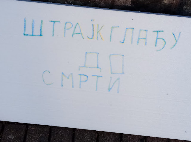 Натпис крај кога Никола Маниташевић штрајкује глађу