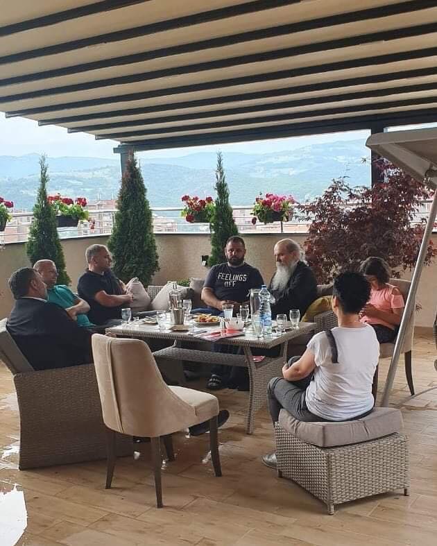 Теодосије у друтву Петровића и још неких “привредника”, чланова “Српске листе” непосредно пре “хуманитарне кризе”.